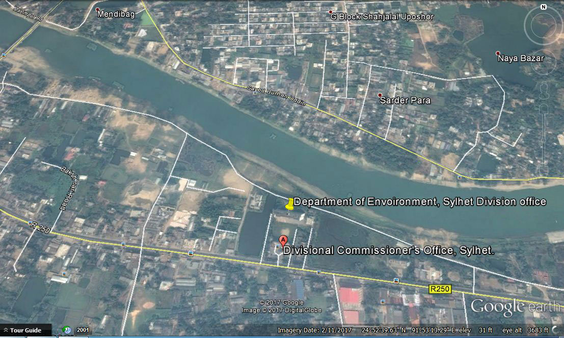 পরিচালক,পরিবেশ অধিদপ্তর, সিলেট বিভাগীয় কার্যালয়, বিভাগীয় পর্যায়ের বহুতল অফিস ভবন (৫ম তলা), আলমপুর,সিলেট। ফোনঃ ০৮২১-৮৪০১২২